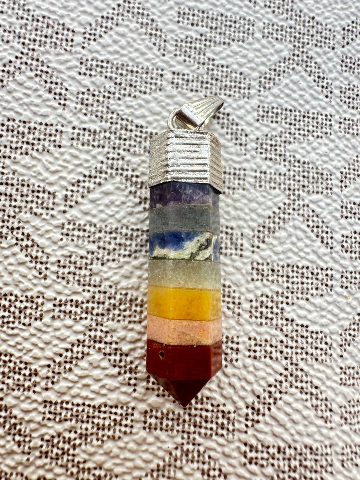 Each stone in the pendant corresponds to a chakra — Root, Sacral, Solar Plexus, Heart, Throat, Third Eye, and Crown — helping you maintain emotional, mental, and spiritual equilibrium.
