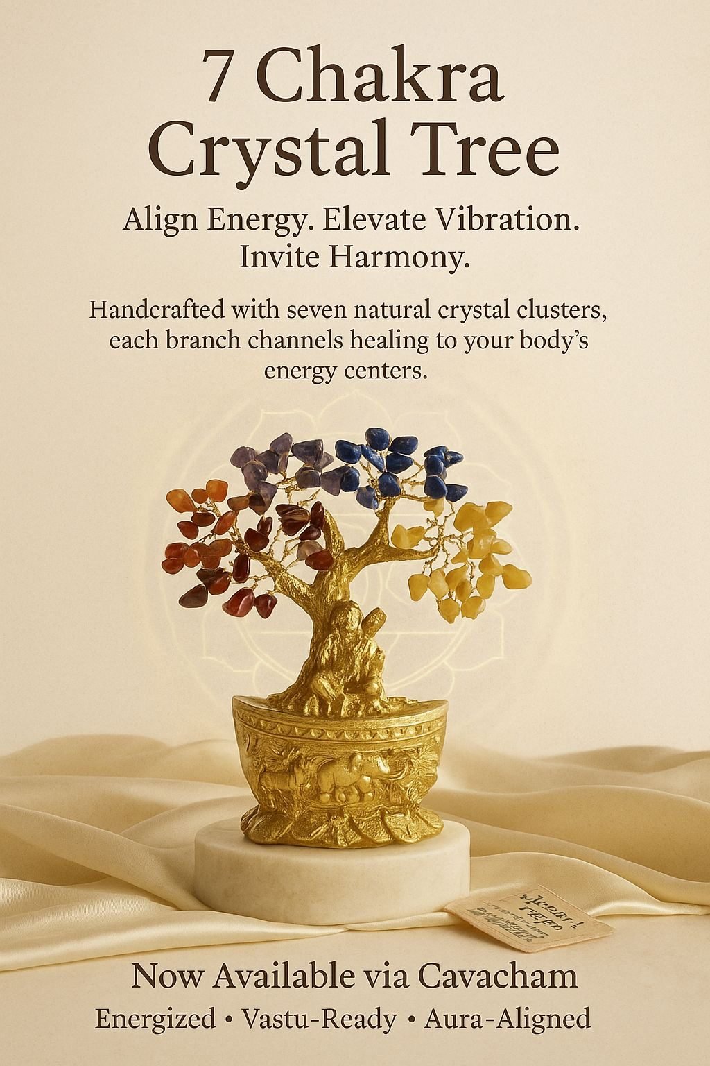 Each Cavacham 7 Chakras Tree is handcrafted using natural grade gemstones, arranged with precision to represent each chakra. Every tree is energy-cleansed and crafted with intention to deliver authentic healing benefits.