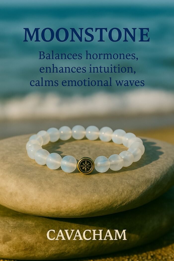 The Cavacham Moonstone Bracelet is a symbol of calmness, emotional healing, and inner balance. Known as the “Stone of New Beginnings,” Moonstone enhances intuition, promotes self-discovery, and helps you embrace change with confidence and grace.