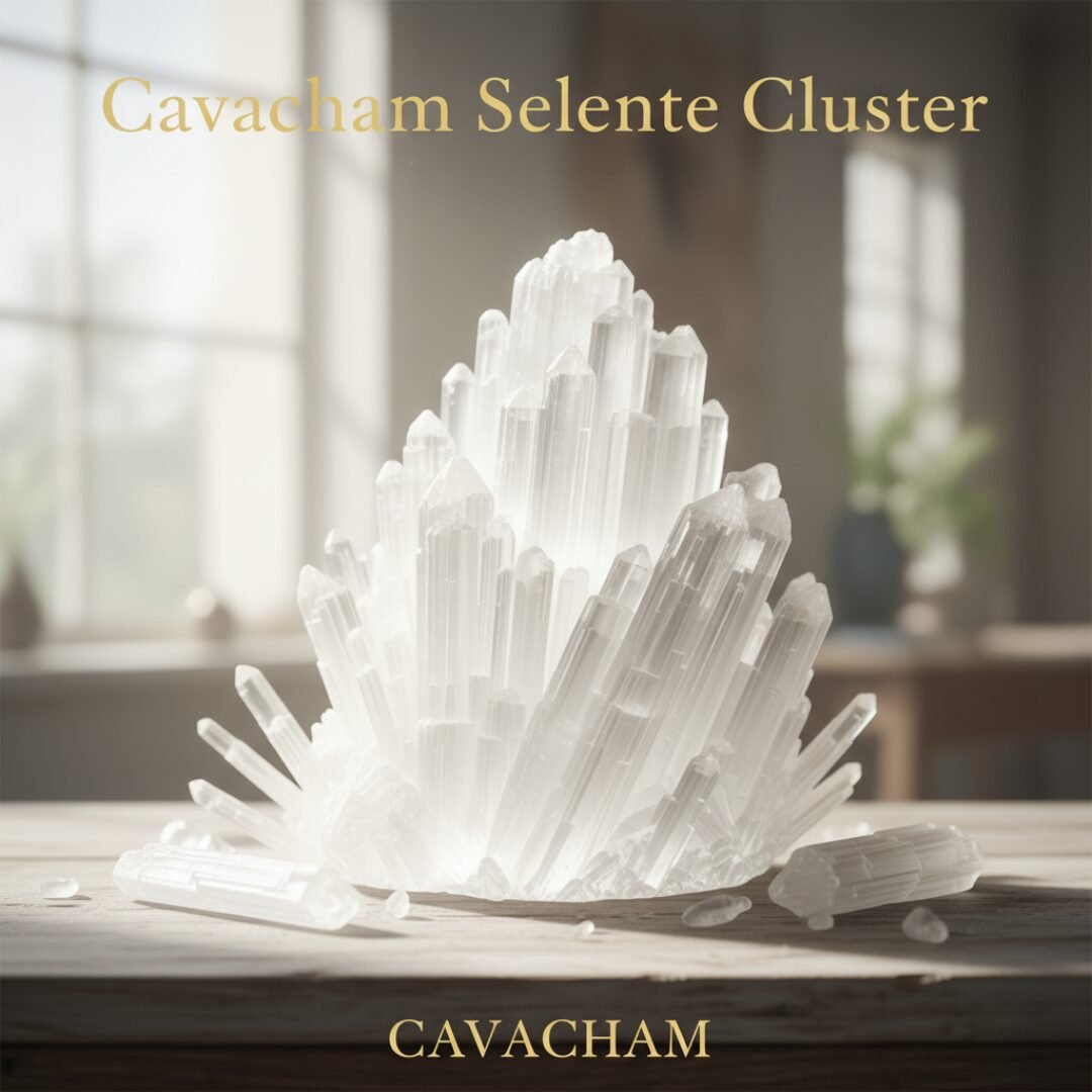 A natural Cavacham Selenite Cluster for space cleansing, crystal charging, and mental calm. Ideal for home, meditation, and healing spaces.